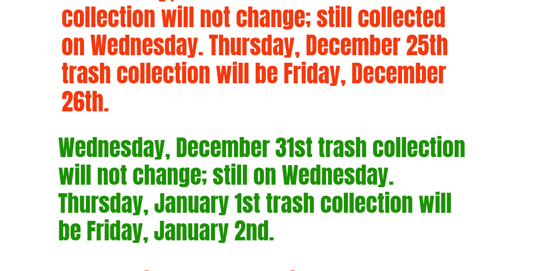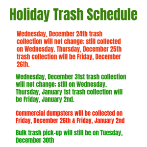 Holiday Trash Schedule